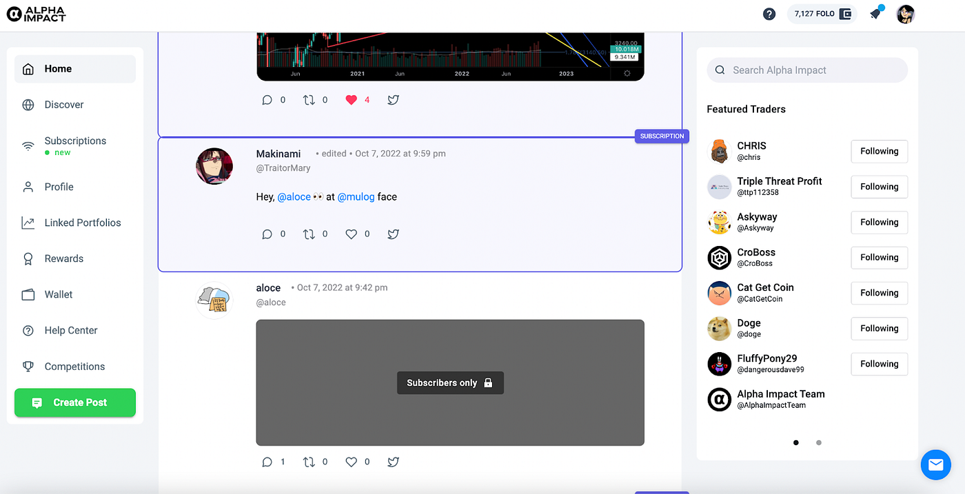 Subscribers can also interact exclusively with their subscribed monetized traders by commenting and liking the “Subscriber-only” posts. (Trader Announcement)