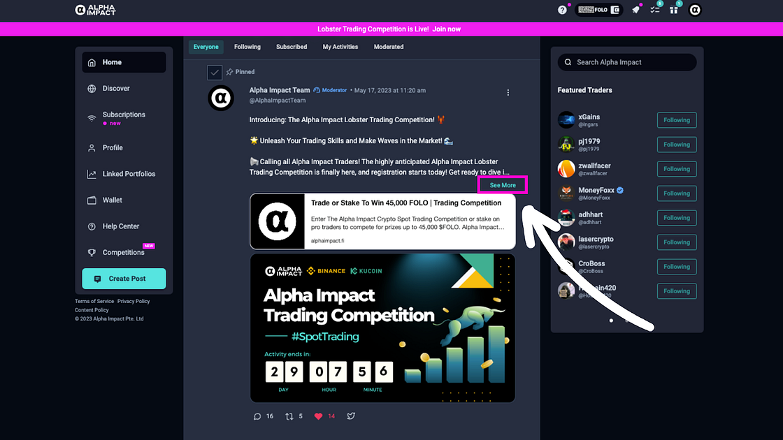 To meet this need, Alpha Impact has created a more detailed Discover Page for everyone. The New Discover Page serves as your gateway to an expansive world of trading knowledge, social engagement, and growth.